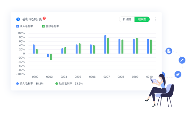 数据监控,报表全面分析毛利及经营状况,及时发现问题,提高效益。